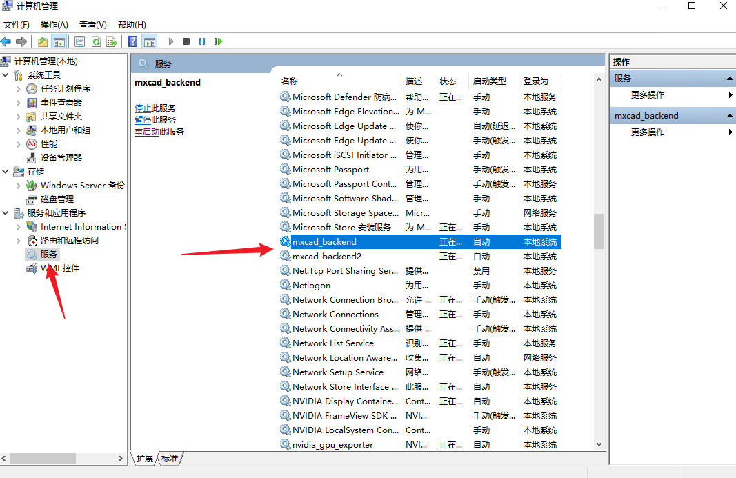 创建后台服务后,可以在“计算机管理”面板中查看相应服务,也可以在这里进行管理。