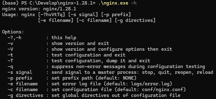 nginx -t:测试配置文件是不是有问题,真正启动nginx之前最好执行一下nginx -c <config>:指定自定义的配置文件nginx -s <signal>:向主进程发送信号,用于控制运行中的nginx- stop:强制关闭